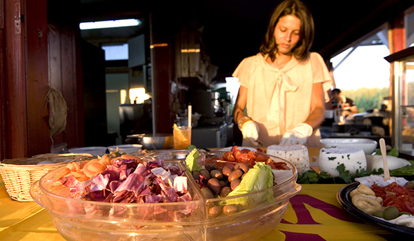 Il ristorante prepara buona parte delle pietanze con prodotti freschi e biologici, primi e secondi piatti di cucina espressa, anche vegani e vegetariani